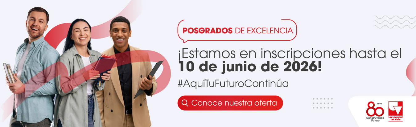 ¡Bienvenido y bienvenida a la Dirección General de Posgrados! Somos una dependencia de la Vicerrectoría Académica, que dinamiza y articula la oferta de nuestros Posgrados de Excelencia de la Universidad del Valle. Nuestra labor constante, en conjunto con todas las Facultades, busca fortalecer nuestra Política de Posgrados y transformar el futuro de la región a través de nuestros aspirantes y egresados con una formación académica de excelencia.