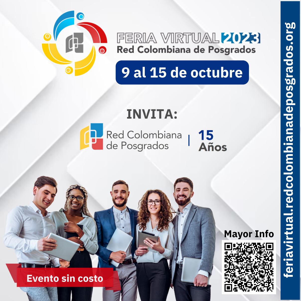 A nivel nacional, también hacemos presencia en la feria organizada por la Red Colombiana de Posgrados -RCP- que, además de mostrar la oferta posgradual de diferentes universidades asociadas a la misma, realiza conferencias y charlas en vivo, enfocadas a temas de actualidad en investigación, financiación de becas y otros temas de interés para los aspirantes.