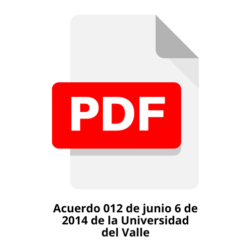 Acuerdo 007 de noviembre 19 de 1996 de la Universidad del Valle Modificación de la reglamentación de los Programas Académicos de Posgrado. Acuerdo 012 de junio 6 de 2014 de la Universidad del Valle Modificación de los artículos 72 y 82 del Acuerdo 007 de noviembre 19 de 1996 del Consejo Superior, que reglamenta las actividades académicas de los estudiantes de Posgrado. Reglamento General de Inscripción y Admisión para los programas académicos de Posgrados de la Universidad del Valle Establecimiento de la Resolución 226 del 23 de octubre de 2023 de la Vicerrectoría Académica, por la cual se modifica el Reglamento General de Inscripción y Admisión para los programas académicos de Posgrados de la Universidad del Valle, la Resolución 187 del 4 de septiembre de 2019 de la Vicerrectoría Académica, que reglamenta las reservas de cupo, y todas las resoluciones anteriores que le sean contrarias. Condiciones para la creación y actualización de los programas académicos de posgrado de la Universidad del Valle Se reglamentan las condiciones para la creación y actualización de los programas académicos de posgrado de la Universidad del Valle, definidas en el Acuerdo 025 del 25 de septiembre de 2015 del Consejo Superior, y se establecen disposiciones adicionales para su implementación.